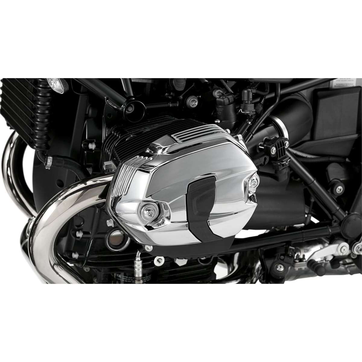 Die Zylinderkopfhaube links im Chromdesign setzt den Boxermotor attraktiv in Szene und verleiht dem Motorrad eine individuelle, edle Optik. Die Form entspricht den Serienhauben in Granitgrau.