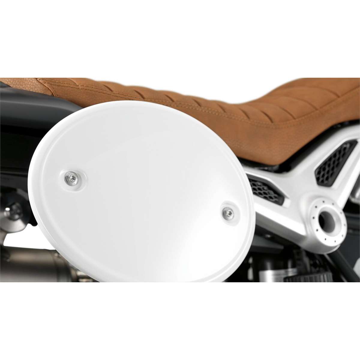 Die Startnummerntafeln in Alpinweiß unterstreichen den stylishen Café-Racer-Look und lassen sich individuell bekleben.