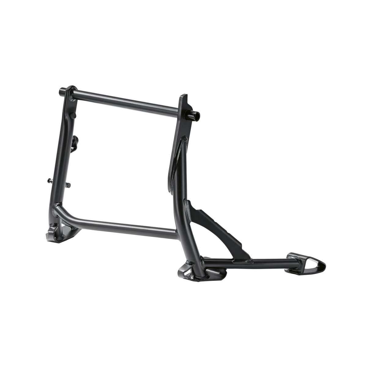 Der stabile Hauptständer sorgt für einen sicheren Stand der Maschine auch in Hanglagen und bietet Vorteile etwa bei der Montage von Koffern und Topcase oder kleinen Wartungsarbeiten wie der Reifendruckkontrolle oder der Kettenpflege. Außerdem benötigt die aufrecht geparkte Maschine weniger Raum.