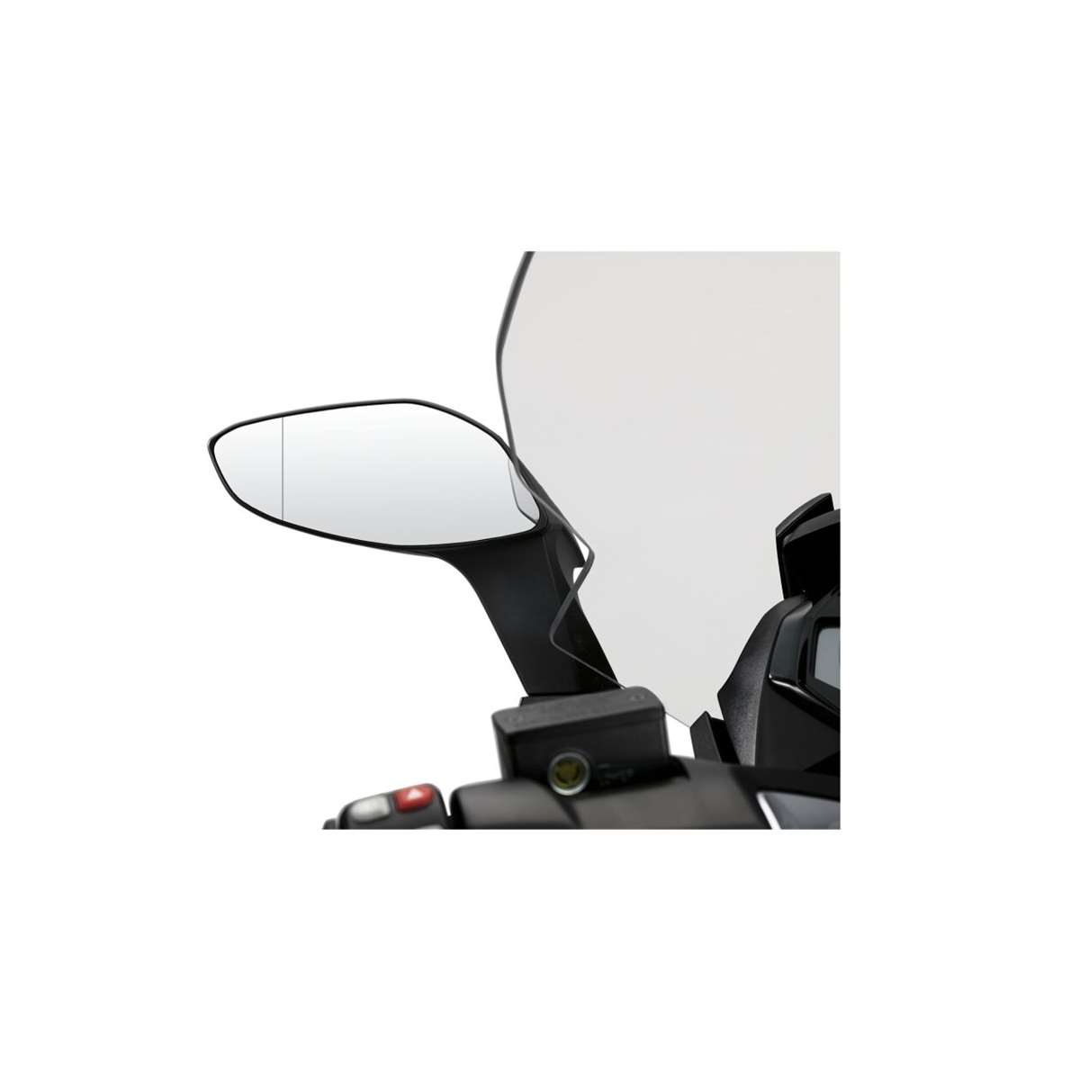 Das asphärische Spiegelglas vergrößert durch seine gebogene Oberfläche das Sichtfeld und eliminiert den toten Winkel fast vollständig. Objekte, die bei herkömmlichen Spiegeln im toten Winkel verschwinden, bleiben beim asphärischen Spiegel größtenteils sichtbar, selbst wenn sie fast auf gleicher Höhe sind.