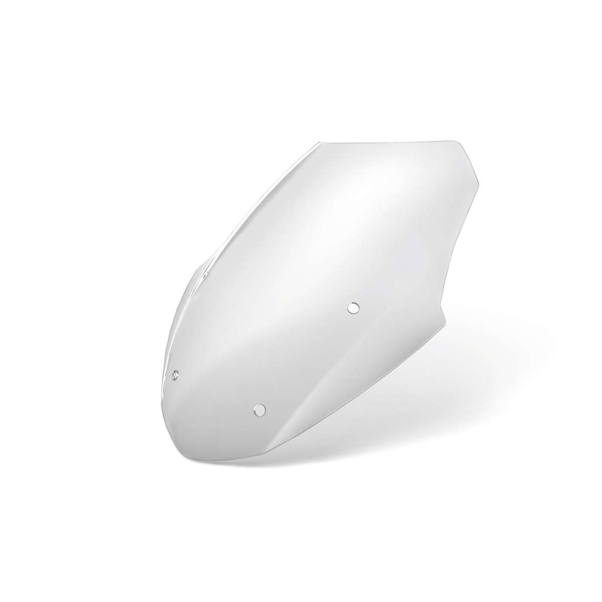 Der kratzfest beschichtete Komfortwindschild ist höher und breiter als der Serienwindschild und bietet für Fahrer und Sozius maximalen Wind- und Wetterschutz. Durch seine aerodynamisch optimierte Form werden auch bei hohen Geschwindigkeiten Luftverwirbelungen und Fahrgeräusche auf ein Minimum reduziert.