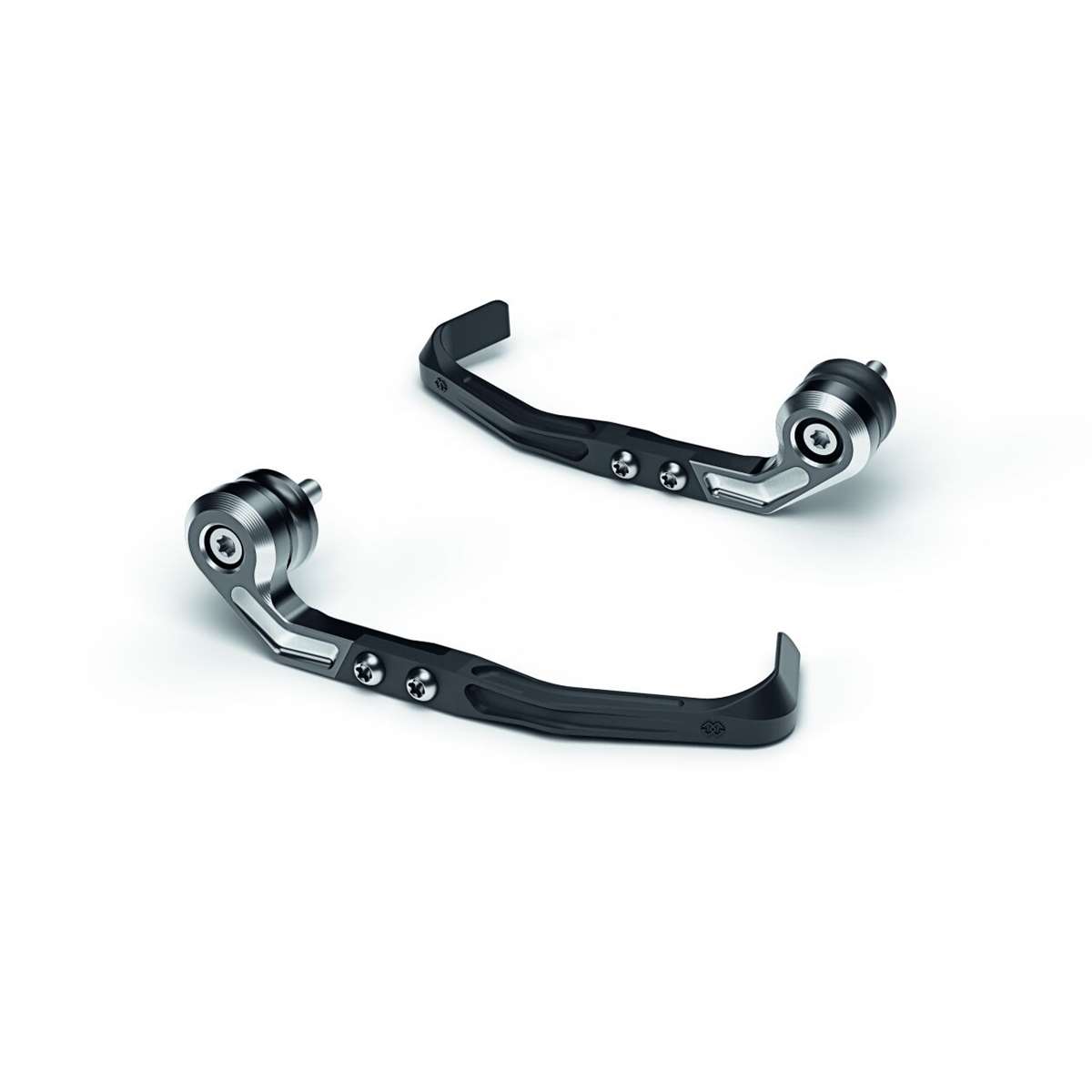 Der Kupplungshebelprotektor setzt ein klares Statement in Sachen kompromisslose Sportlichkeit. Der gebogene Bügel aus Aluminium und Kunststoff schützt den Kupplungshebel am Lenker davor, bei Berührung mit einem anderen Fahrzeug unbeabsichtigt betätigt oder bei einem Umfallen der Maschine beschädigt zu werden.