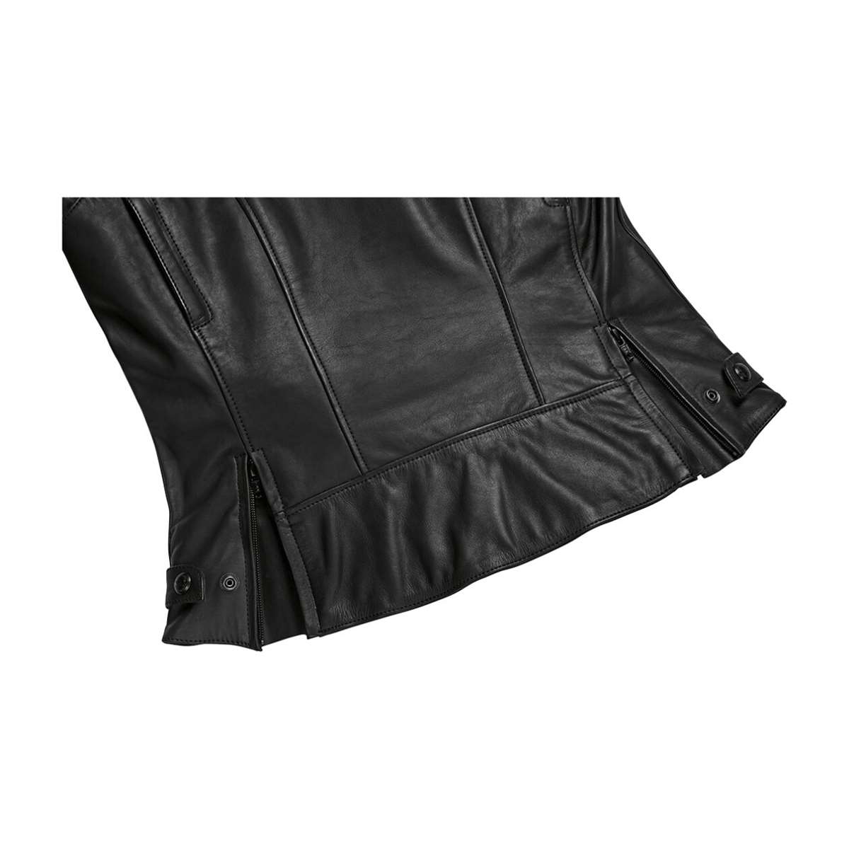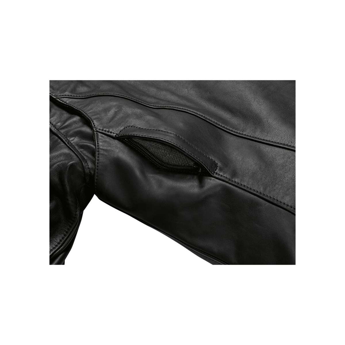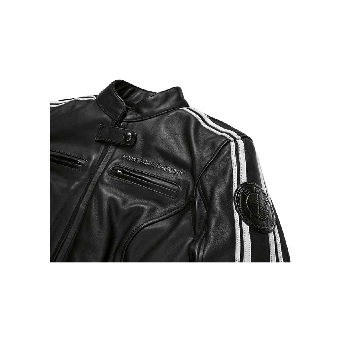 Die in klassisch sportlichem Design gehaltene Lederjacke TwinStripes für Damen präsentiert sich mit typischen Zierlinien auf den Ärmeln. Damit greift sie traditionelle Merkmale auf, die auch das Design vieler BMW Motorräder kennzeichnen. Unter dem Leder verbergen sich moderne NP-Flex-Protektoren an Schultern und Ellbogen.